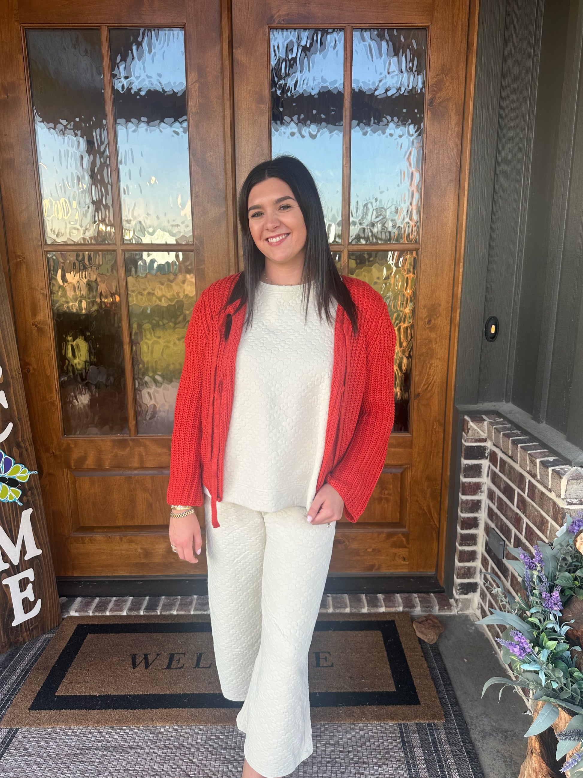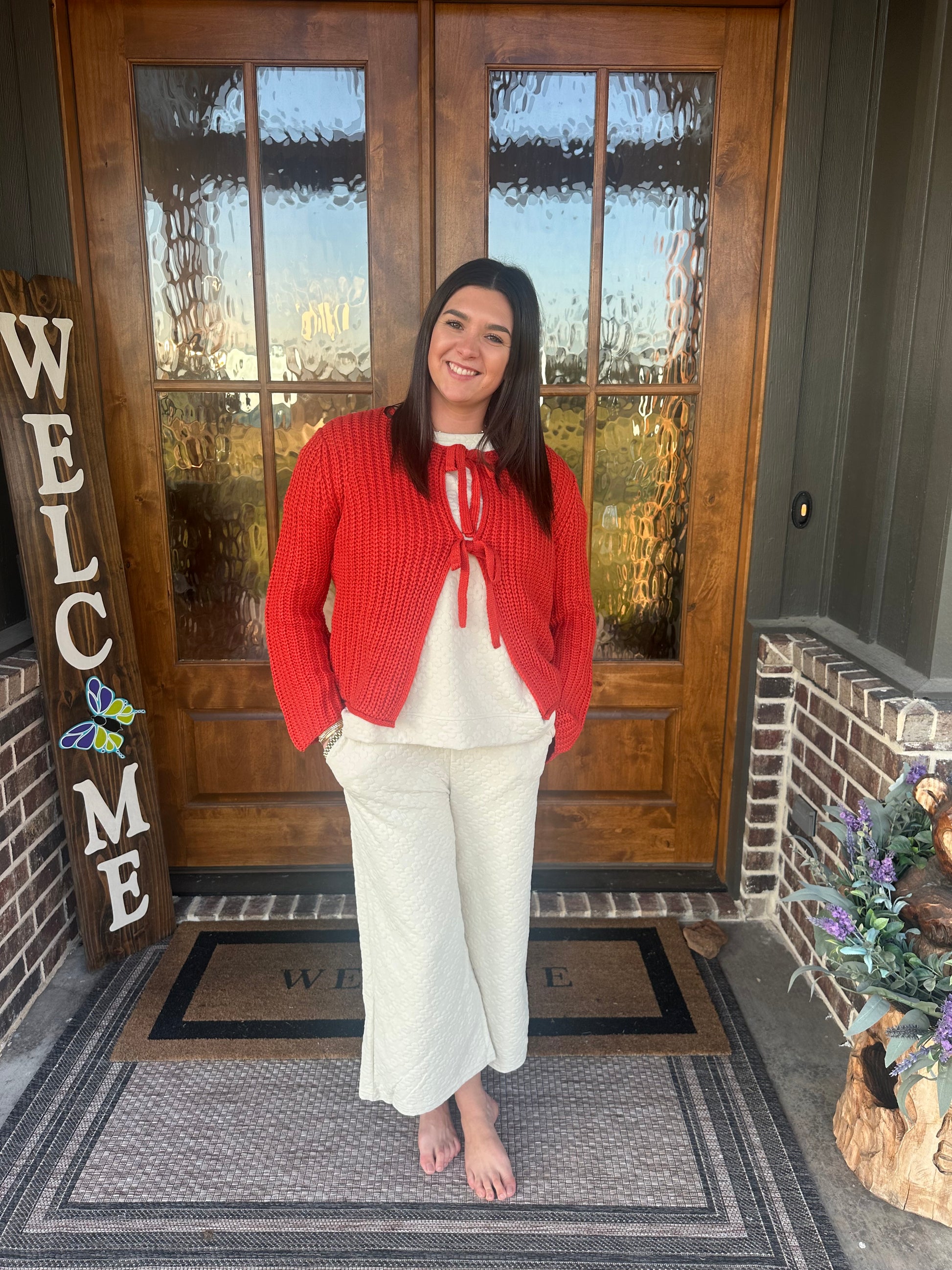 SOLID LOOSE GAUGE KNIT SWEATER TOP WITH BOW TIED CLOSURE