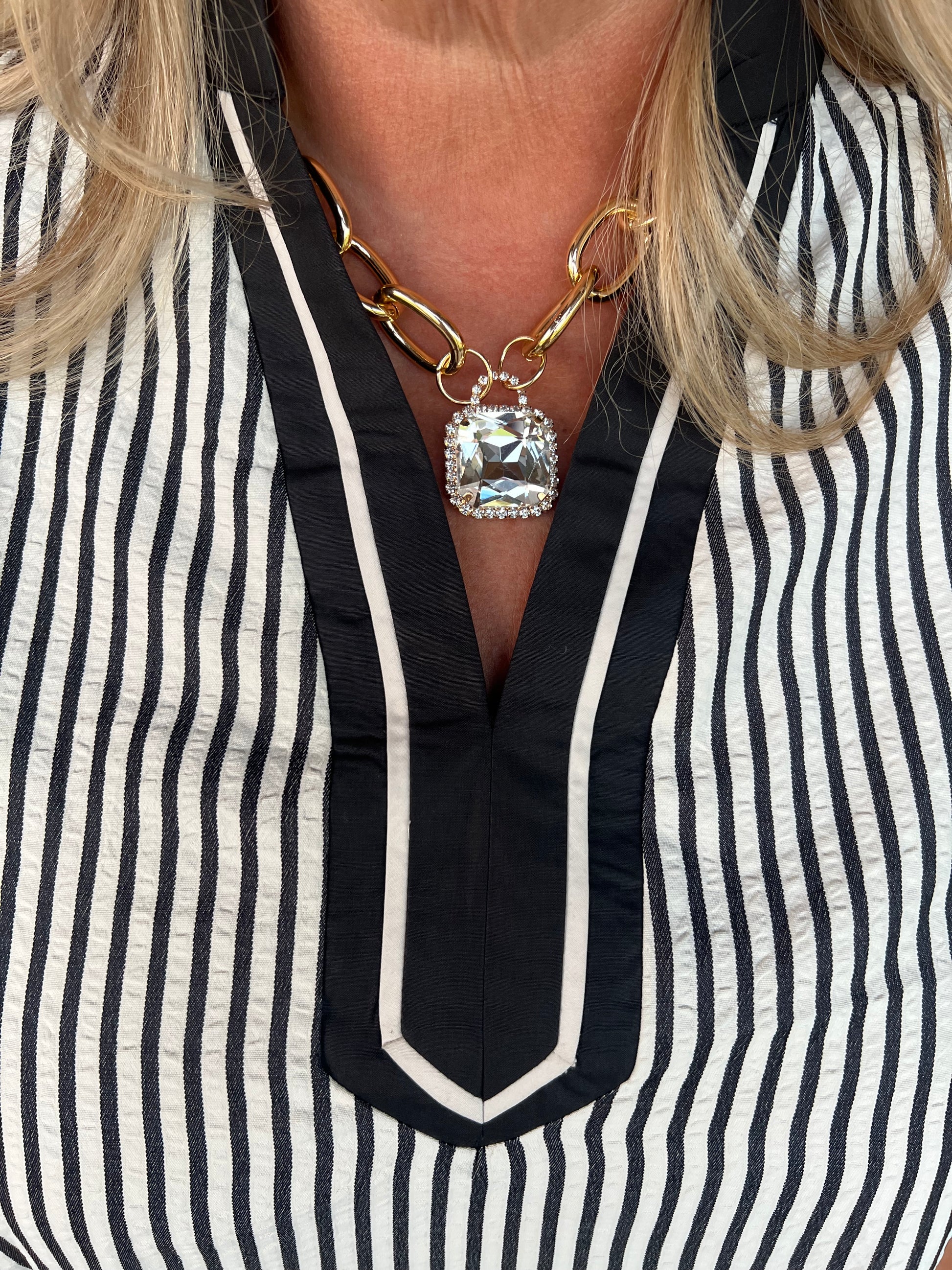 The Josie Black/Cream Striped Embroidered Puff Sleeve Top