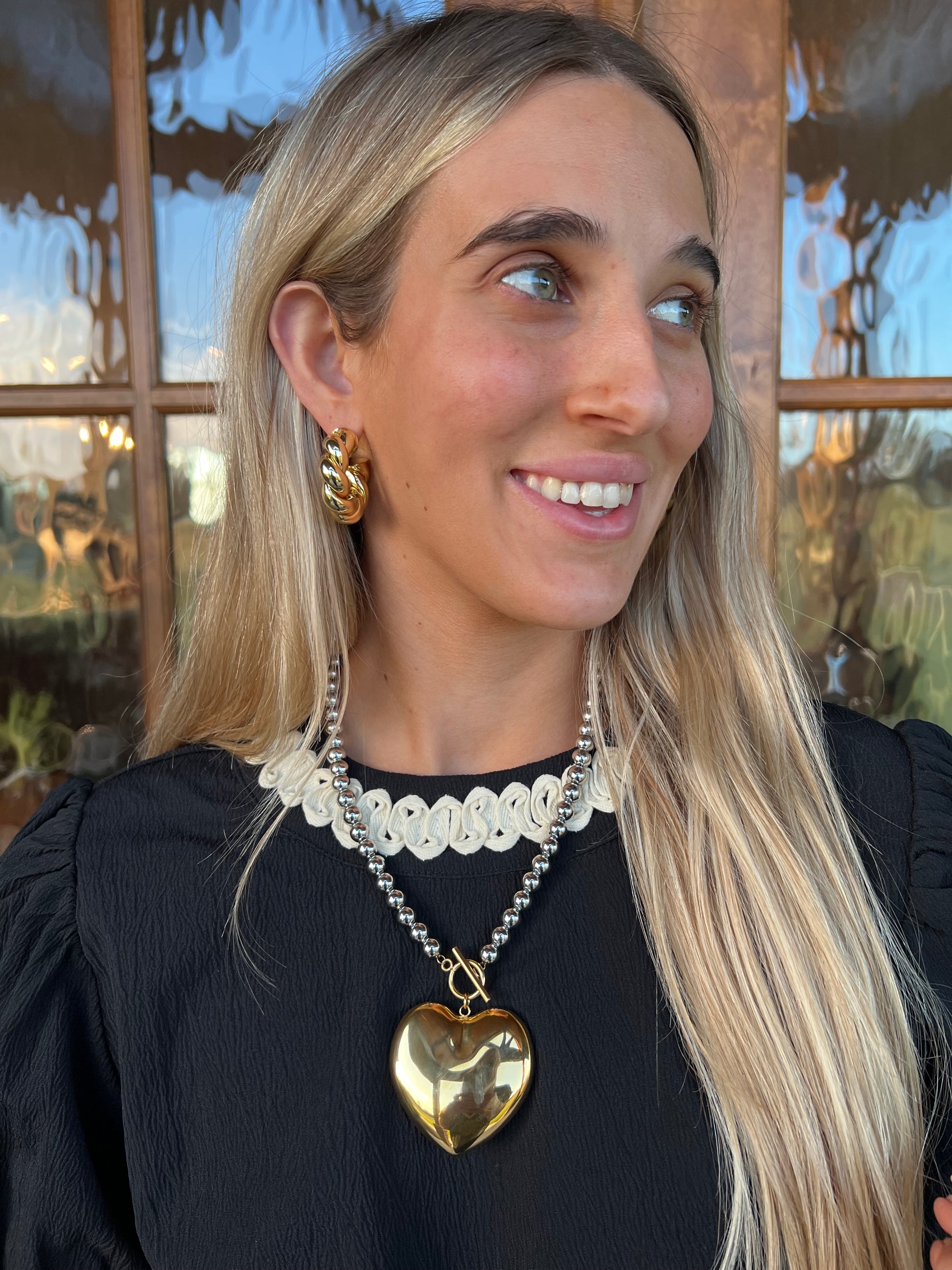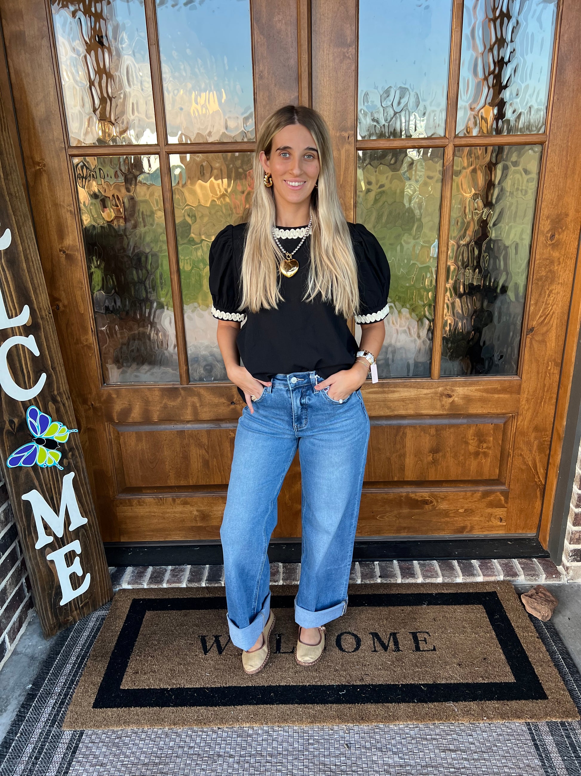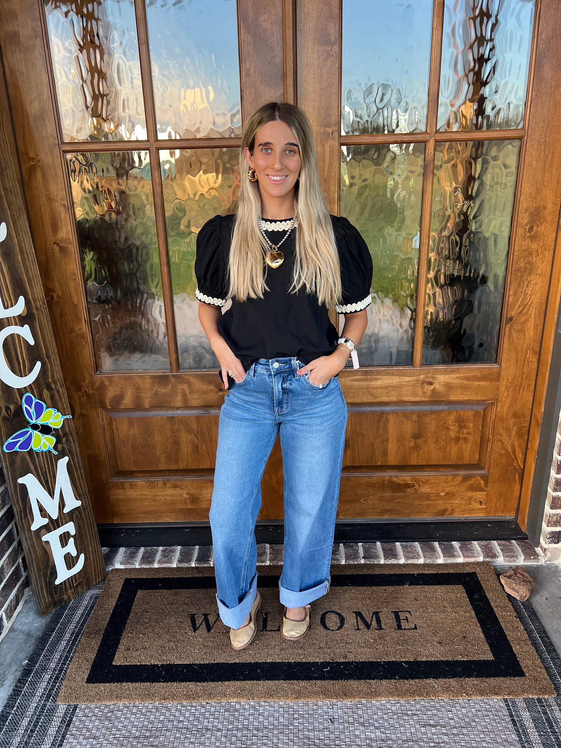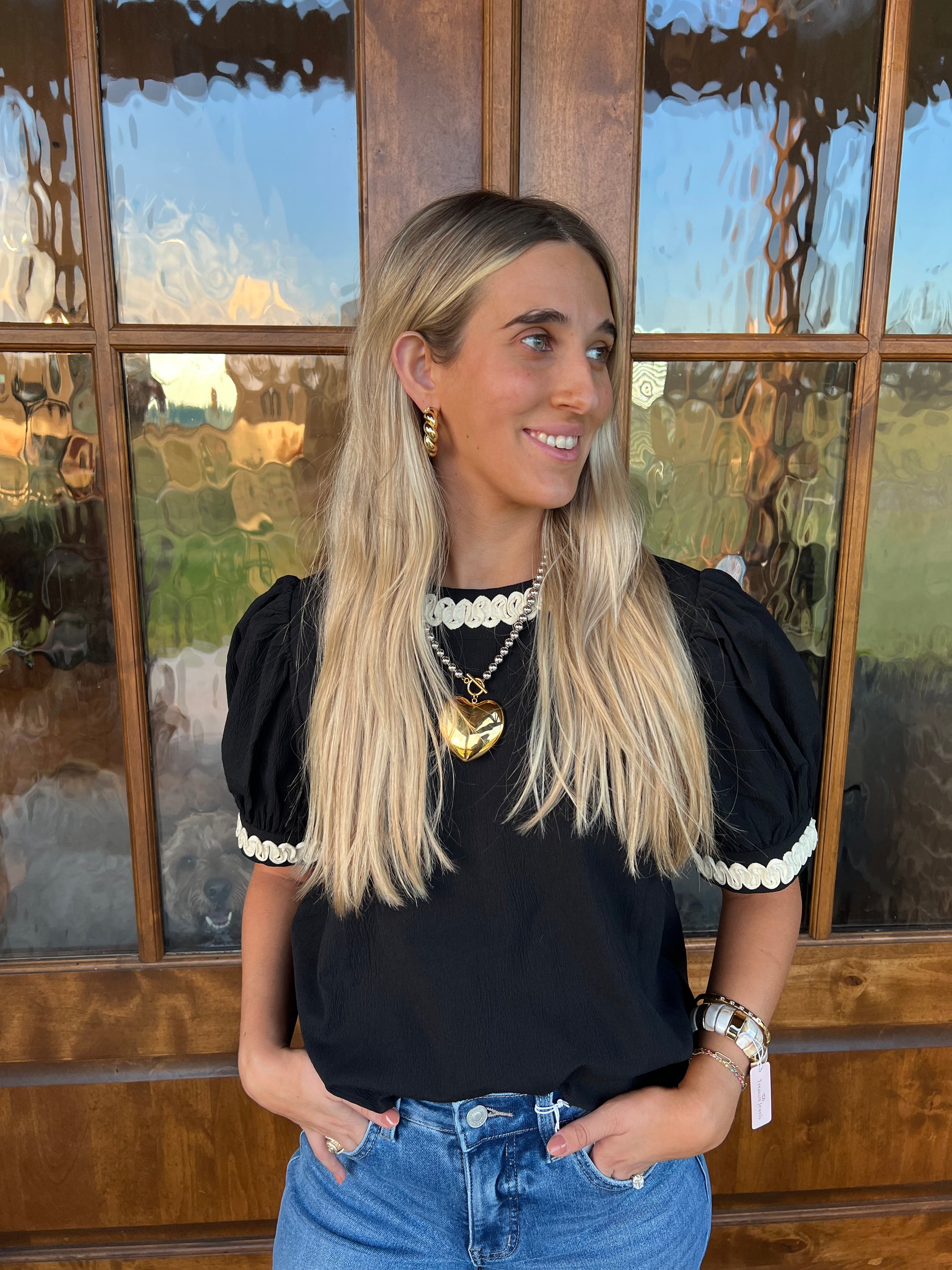 The Sawyer Black Short Sleeve Top Cream Trimming