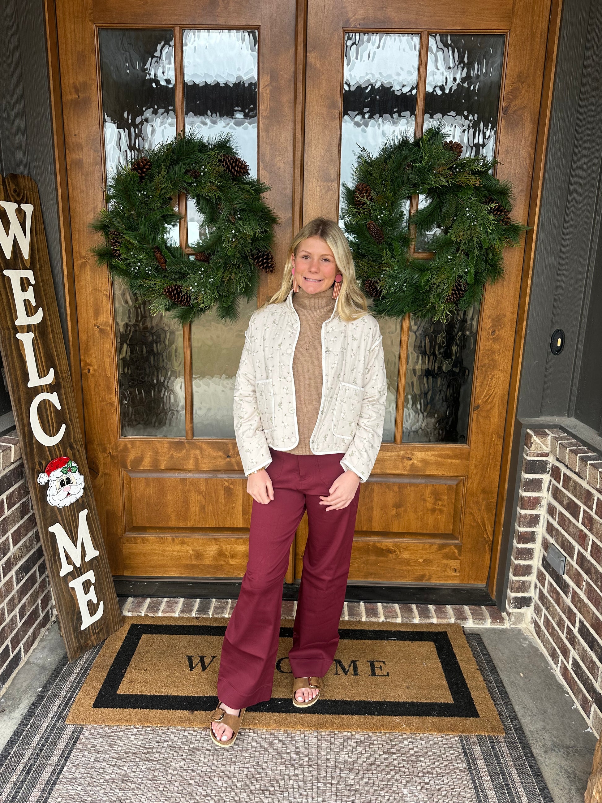 The Taylor Burgundy Button Stretched Pants